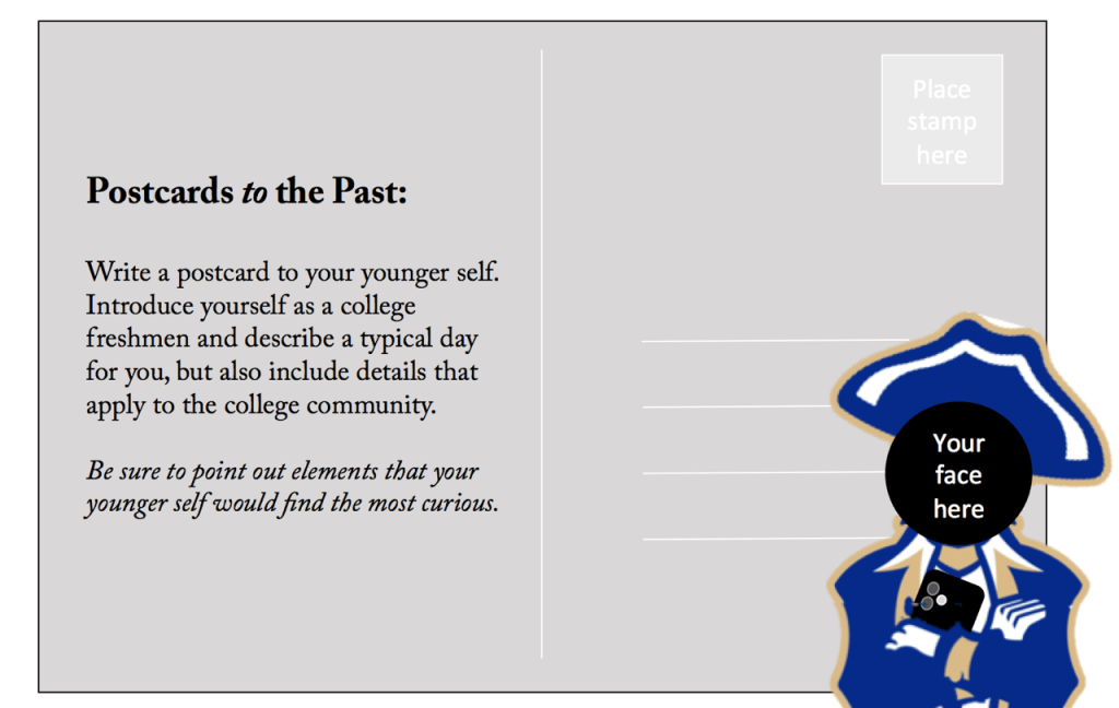 You have just entered a brand new, significant phase of your young life – becoming a college student. This first assignment requires you to write a postcard to your younger self about what this “future” life is like. First, choose an age that you are writing to and think about what life was like at that age for you. Next, write to yourself from “the future”. Tell your younger self about what your life is like now, and be sure to choose specific examples of college life that your younger self might regard as science fiction.