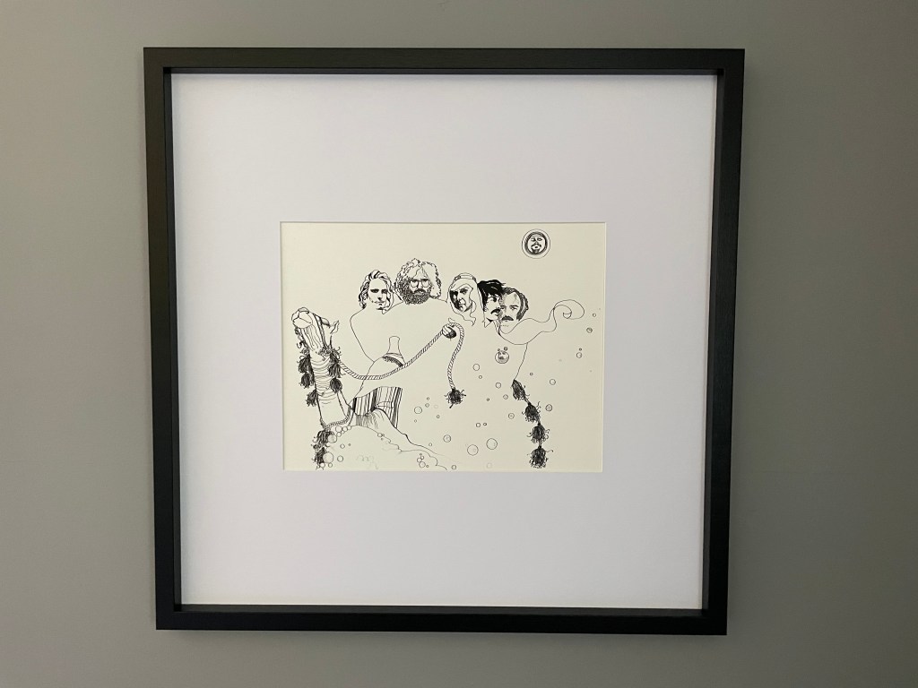 Black and white 17×19 print (image can be matted 11×14) on 100 lb cover paper. Unframed.